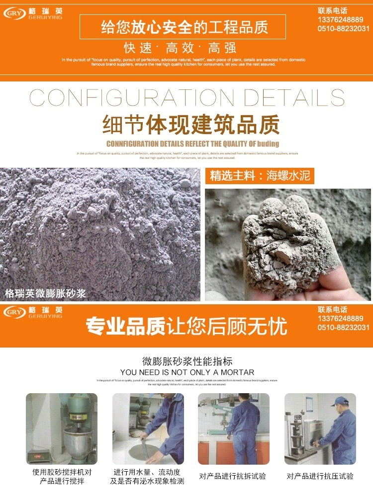 具有自流性好,快硬、早強、高強、無收縮、微膨脹;無毒、無害、耐老化、對水質及周圍環境無污染,自密性好、防銹等特點。