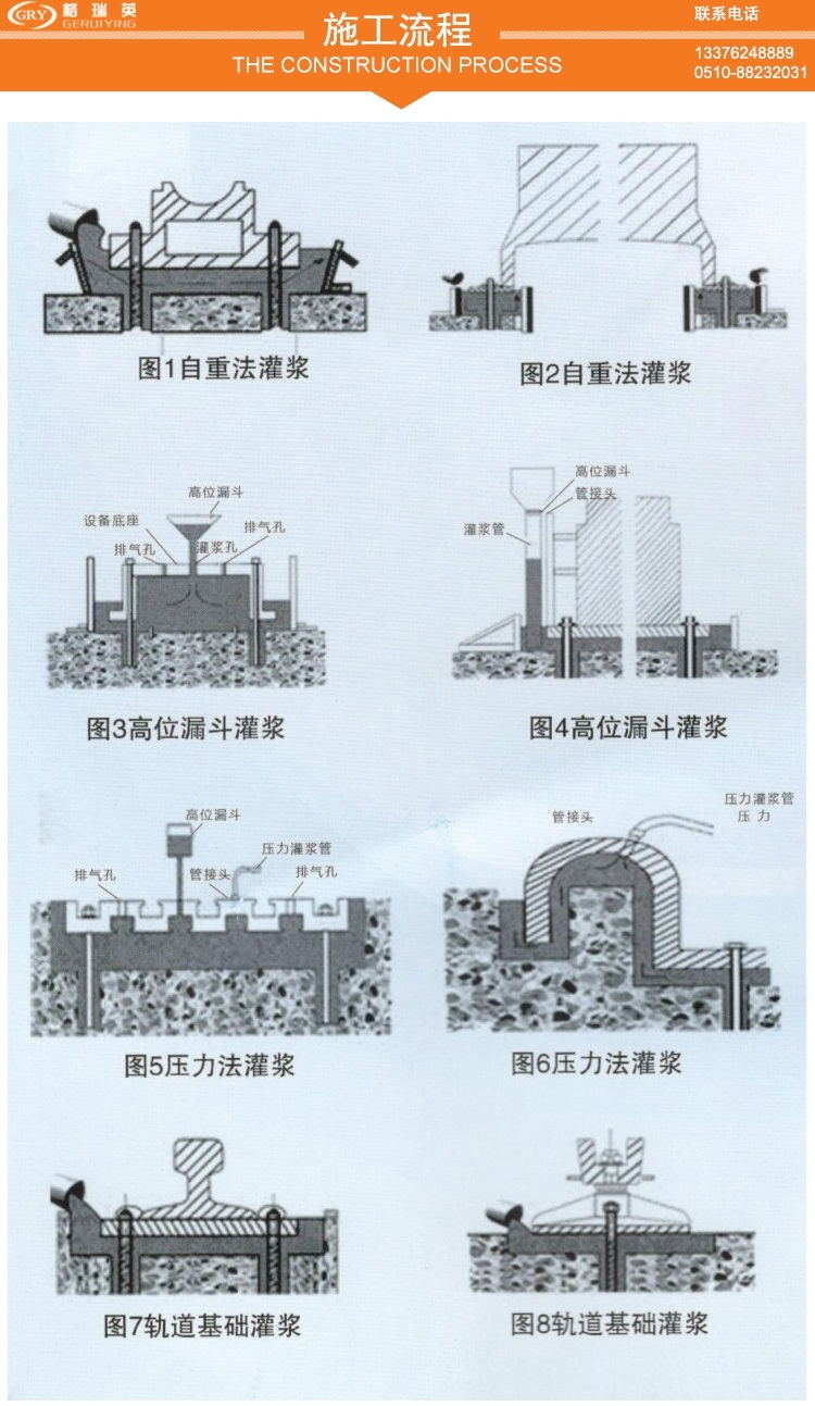 自流態現場只需加水攪拌,直接灌入設備基礎,砂漿自流,確保無振動、長距離的灌漿施工。